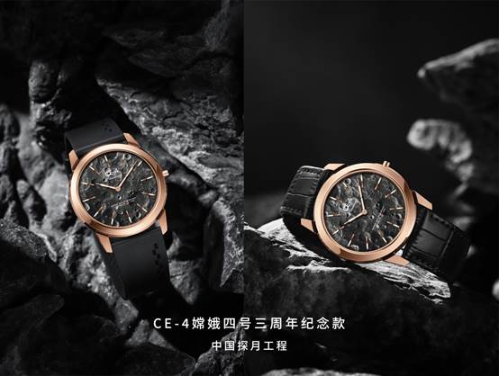 在月背工作已超3周年【嫦娥四号探测器于2019年1月3日成功软着陆在月球背面艾特肯盆地内的冯卡门撞击坑,开展了人类历史上首次月背探测】的「嫦娥四号三周年纪念腕表」#CE-4,腕表巧妙设计成油压月球表面表盘与沙坑感的把的,另外航天材料同款氟橡胶胶带黑表的魅力在于它的运动感,具有透气性及航天的顽强和坚韧的特质。骨鳄纹真牛皮皮带全黑设计,既低调又宽容性强,往往给人武骨的感觉。
